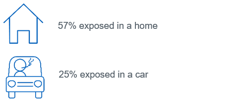 62% of pupils reported being exposed to second hand smoke in the home or in a car .