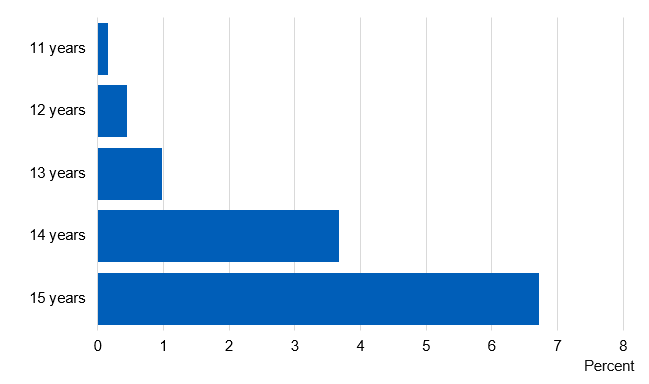 The proportion of regular smokers increased with age; from less than 1% of 11 and 12 year olds, to 7% of 15 year olds.